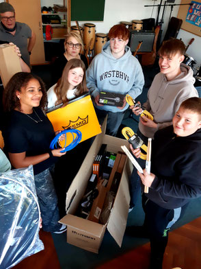 Für strahlende Gesichter hat die Firma Thomann bei unserer Schulband gesorgt - ein großes Dankeschön nach Treppendorf :-)